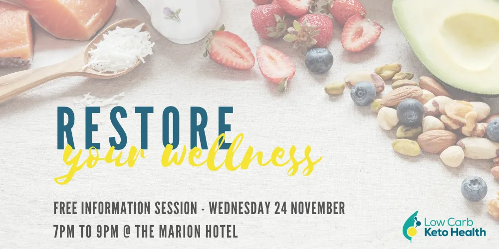 A free evening information session on the latest science of low carbohydrate nutrition on Wednesday 24th November 2021 from 7pm to 9pm at Marion Hotel, 849 Marion Road, Marion, South…